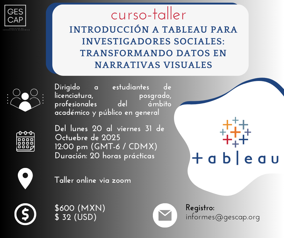 Curso-taller ‘Introducción a Tableau para investigadores sociales: transformando datos en narrativas visuales’ OCTUBRE 2025