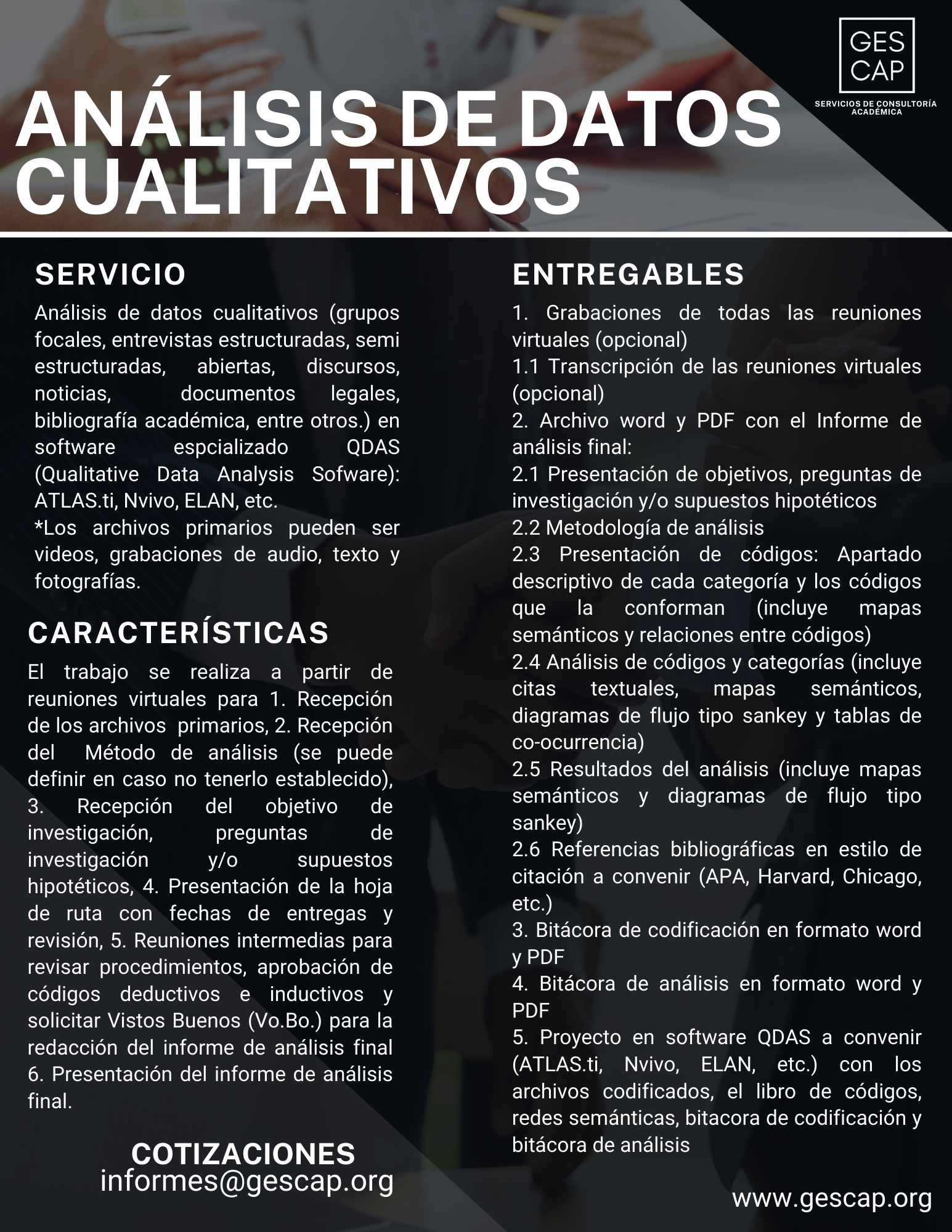 Cotizaciones al correo informes@gescap.org o rellene el siguiente formulario: